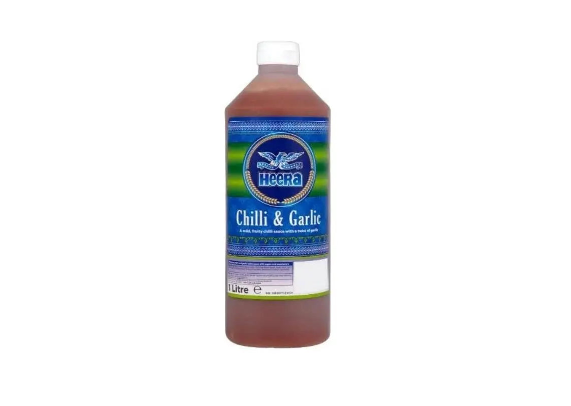 "Heera Chilli & Garlic Sauce 1 litre" is likely a condiment that combines the bold flavors of chili and garlic. Here's a general description you might expect: