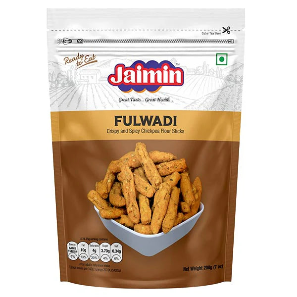 Jaimin Fulwadi is a traditional Indian snack known for its crispy texture and spicy flavor. Made from gram flour and a mix of aromatic spices, this 200g pack offers a delicious and crunchy treat perfect for snacking any time of the day. Fulwadi is a popular snack enjoyed in many Indian households and is ideal for serving at gatherings or enjoying with a cup of tea.