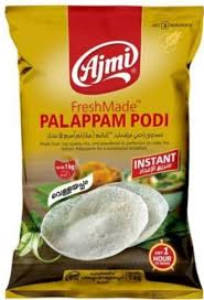 Ajmi Palappam Podi is specially formulated to prepare soft, lacy-edged palappams with a fluffy center. This ready-to-use mix ensures authentic taste and texture, making it a perfect choice for Kerala's traditional breakfast favorite. -
