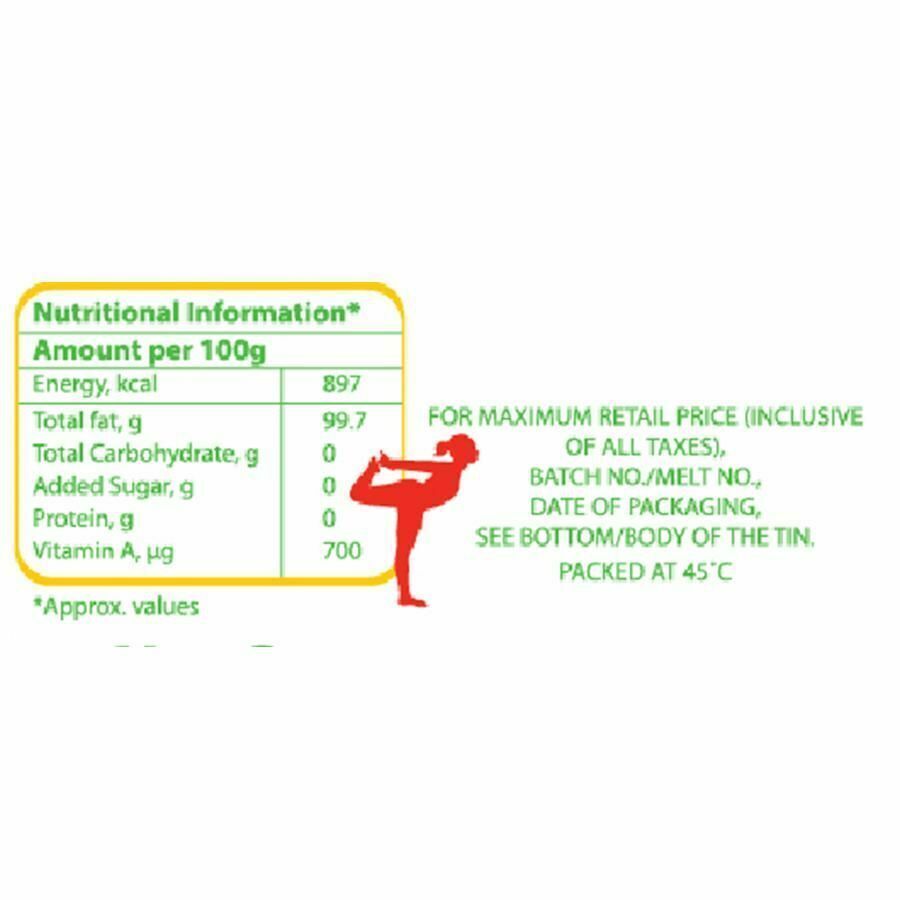 Nutritional Content: Ghee is a source of healthy fats and fat-soluble vitamins. Amul Pure Ghee may contain essential nutrients like vitamin A, E, and D, contributing to its nutritional profile.